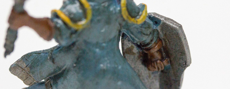 The most interesting part of this miniature was the shield. I ended up mixing my own brown-yellow-black shade for this, and if I can say, it looks great. I didn’t know how to highlight metallics, and wasn’t sure if gold and white would’ve mixed, so I didn’t go there.